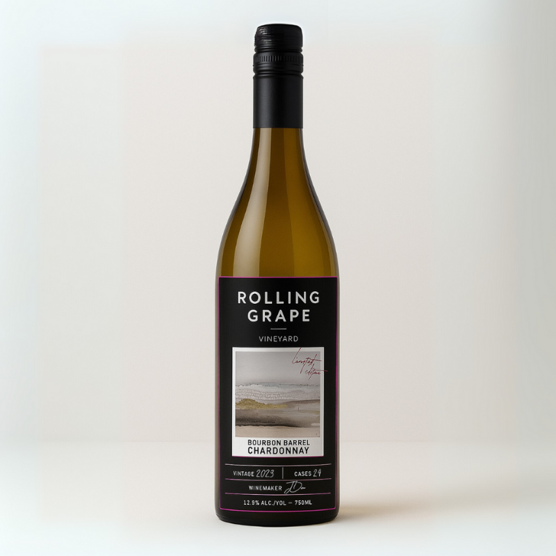 Aged in a bourbon barrel, this bold and expressive Chardonnay has notes of coconut, toast, vanilla, ginger, green apple, and peach.