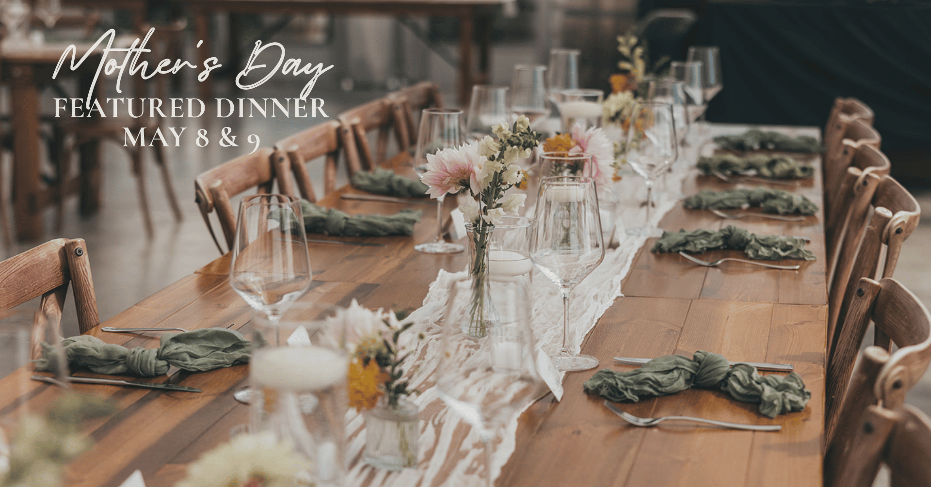 Set against the warm and inviting atmosphere of the vineyard, this dining experience is the perfect way to gather and celebrate Mom with great food, exceptional wine, and beautiful surroundings.